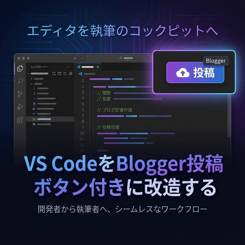 今回は、この最後の摩擦を消し去るために、VS Codeの右上に自分専用の「Blogger投稿ボタン」を実装し、執筆環境をコックピット化した記録をまとめます。